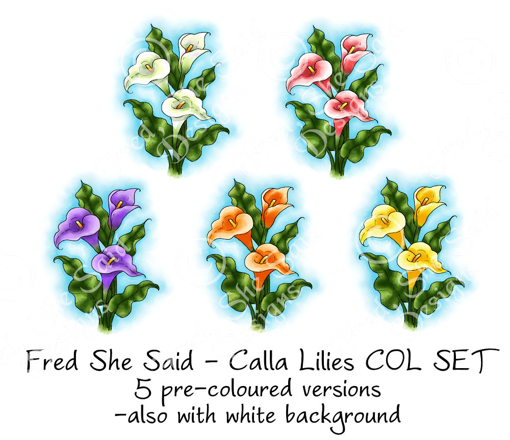 Price: $ 2.50 CADCalla Lilies Pre-Coloured Set ( with bonus sentiments )
